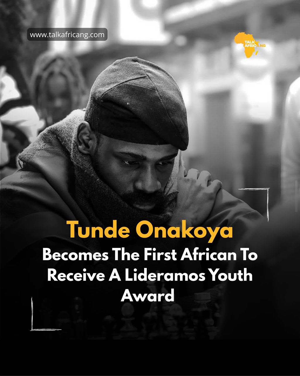 Nigerian chess master and social entrepreneur Tunde Onakoya has made history after becoming the first African to receive the Lideramos Youth Award for Social Impact in Barcelona, Spain.